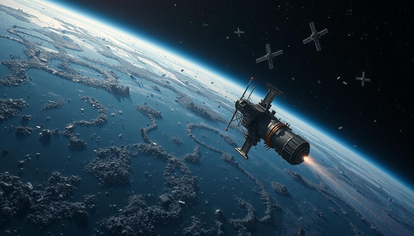 Orbital pollution is a big threat to future space missions. Models say there’s a chance of collision every 5–10 years. This creates more debris, starting a dangerous cycle.