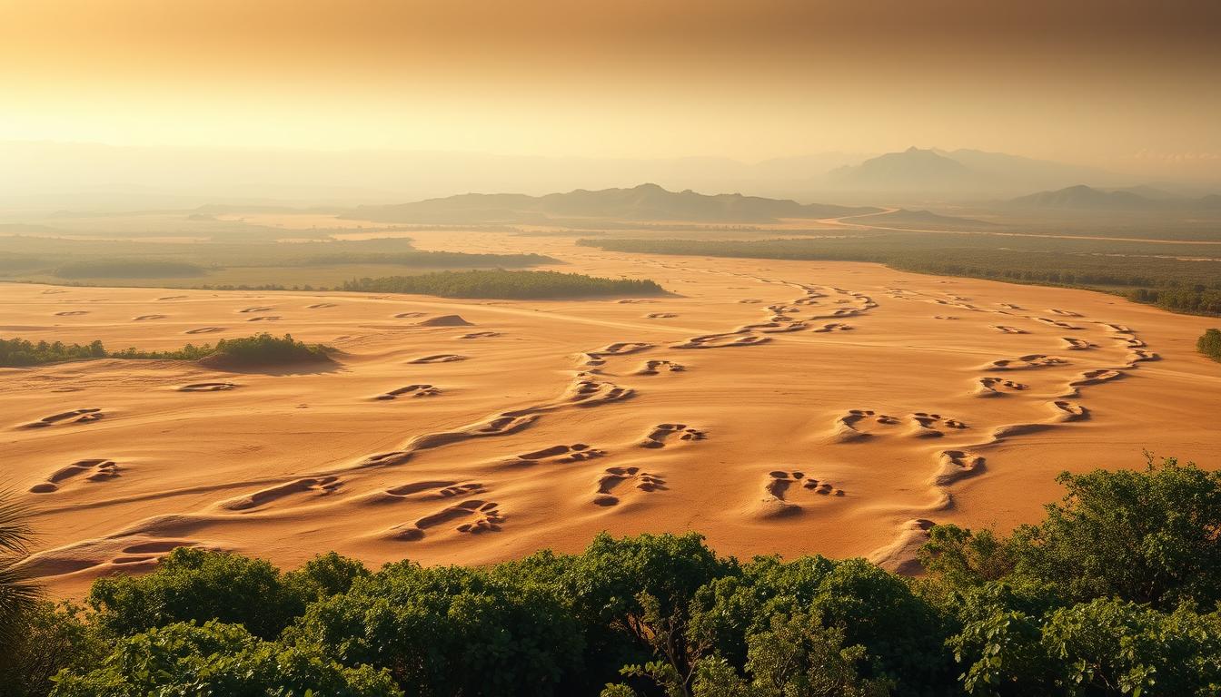 The site’s mud patterns suggest it was once a lagoon. This paleoenvironmental interpretation helps us understand the ancient environment.