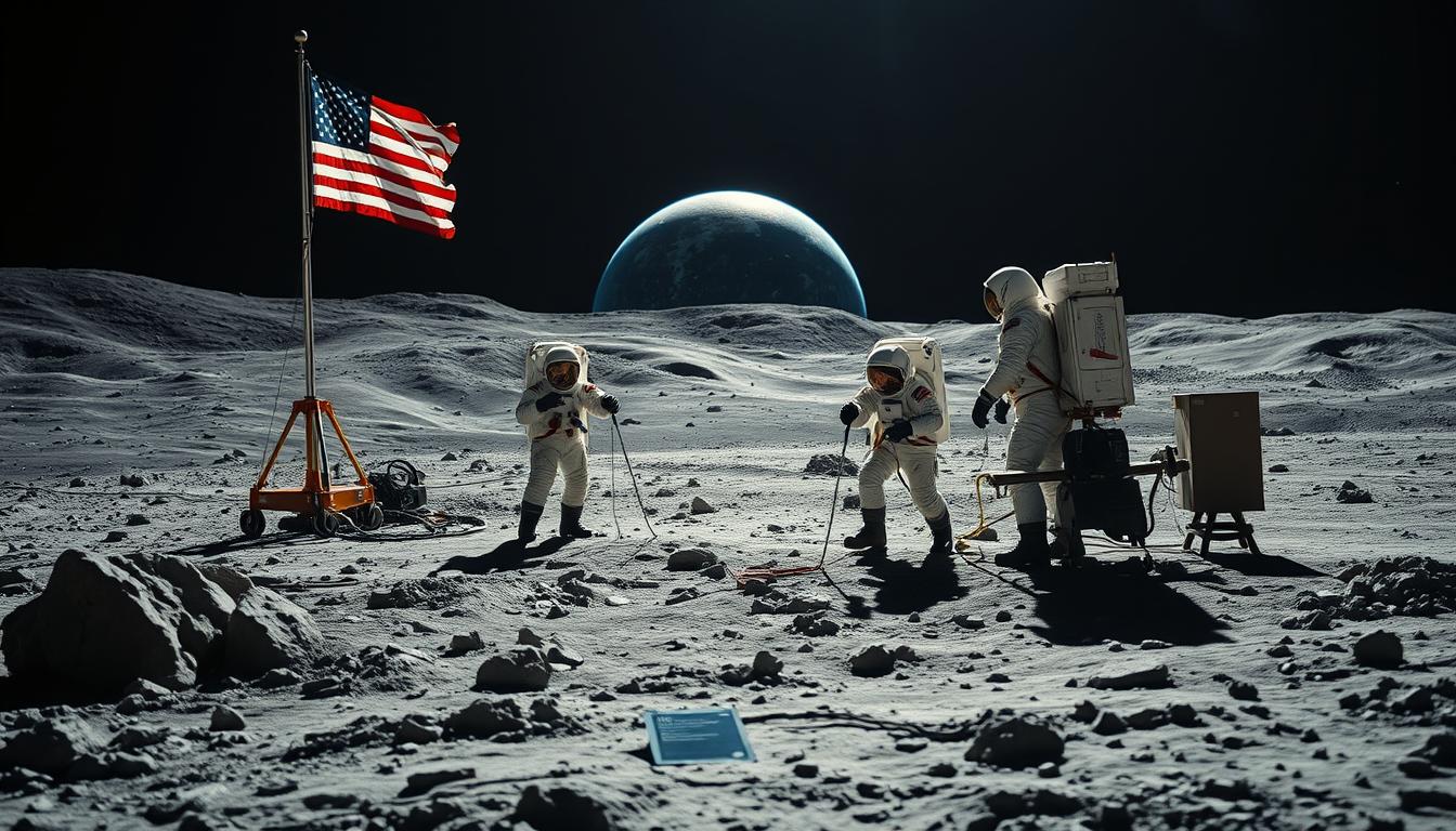 The Apollo missions, including Apollo 11’s 1969 landing, uncovered moon landing discoveries that reshaped our understanding of the Moon. These Apollo mission findings revealed the lunar surface’s volcanic past and ancient rock layers. This was part of the first lunar exploration revelations.