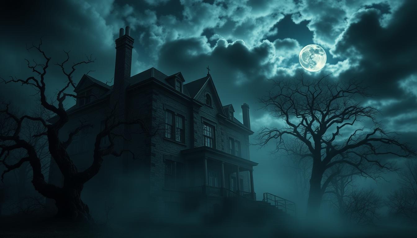 Shared sightings and animal reactions add depth to these stories. In Jamaica’s Rose Hall, Annie Palmer’s “White Witch” ghost is said to haunt. France’s Château de Brissac has a Green Lady ghost. These tales show haunting survivor stories are shared across cultures.