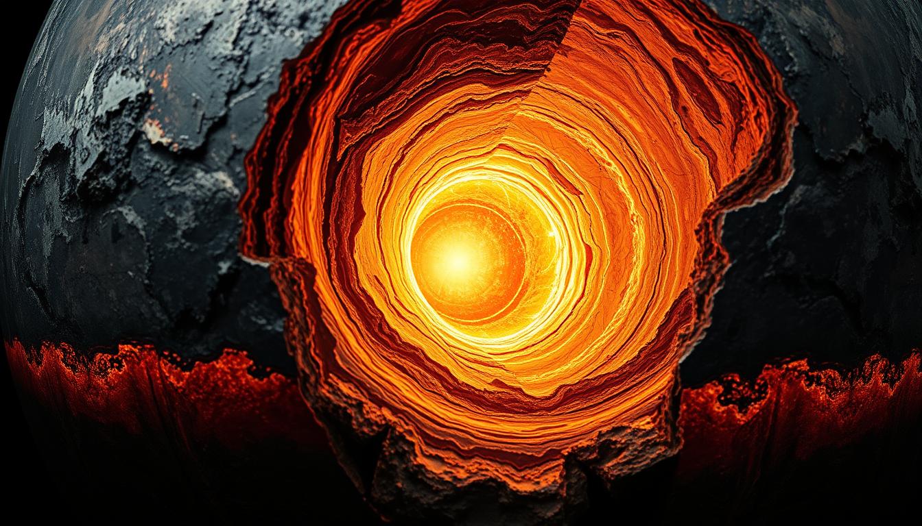 At the heart of our planet lies the inner core, a hidden world holding earth’s core secrets. This iron-nickel sphere, just 2,440 km wide, generates Earth’s magnetic shield—a vital defense against space radiation. Smaller than the moon, its structure remains one of earth’s center’s greatest puzzles.